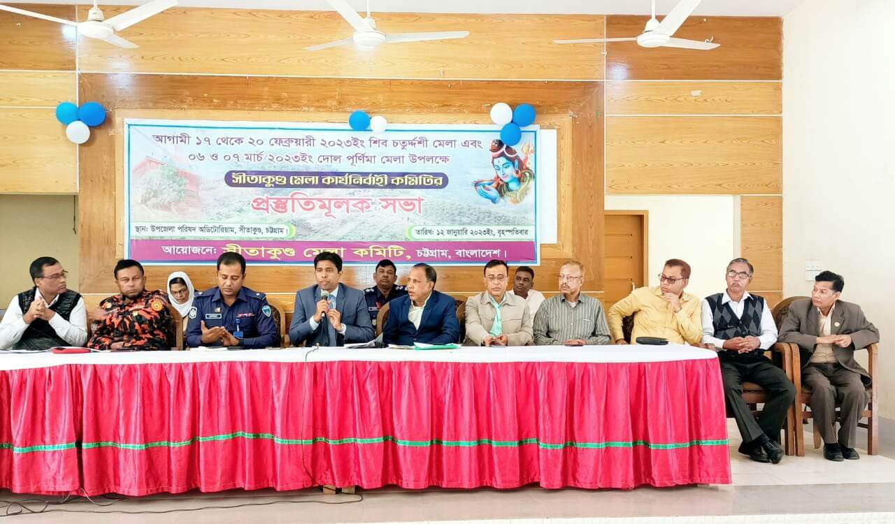সীতাকুণ্ড উপজেলা নির্বাহী কর্মকর্তা(ইউএনও) ও মেলা কমিটির সভাপতি মো. শাহাদাত হোসেনের সভাপতিত্বে ও সাধারণ সম্পাদক শ্রী বাবুল কান্তি শর্মার পরিচালনায় সভায় উপস্থিত ছিলেন, সীতাকুণ্ড মডেল থানার ভারপ্রাপ্ত কর্মকর্তা(ওসি) মোঃ তোফায়েল আহমেদ,সীতাকুণ্ড ফায়ার সার্ভিস ও সিভিল ডিফেন্স এর সিনিয়র ষ্টেশন অফিসার নুরুল আলম দুলাল, সীতাকুণ্ড রিপোর্টার্স ক্লাবের সভাপতি মুহাম্মদ ইউসুফ খাঁন, সীতাকুণ্ড সদর বাজার কমিটির সভাপতি রেজাউল করিম বাহার,সাধারণ সম্পাদক বেলাল হোসেন,মেলা কমিটির অতিরিক্ত সাধারণ সম্পাদক দুলাল চন্দ্র দে ,পৌর কাউন্সিলর দিদারুল আলম এ্যাপোলো,উপজেলার আনসার বিডিপি ফেরদৌস আরা, শমীর কান্তি শর্মা, প্রেমদাশ, অমৃত কুমার নাথ,তপন চন্দ্র দে প্রমুখ।