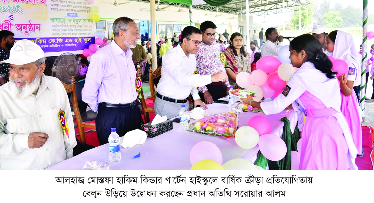 সময়ের নিউজ ডেস্কঃচট্টগ্রাম সিটি কর্পোরেশনের সাবেক মেয়র আলহাজ¦ এম মনজুর আলম প্রতিষ্ঠিত আলহাজ¦ মোস্তফা হাকিম কিন্ডার গার্টেন ও হাইস্কুলের বার্ষিক ক্রীড়া প্রতিযোগিতা শেখ রাসেল মিনি স্টেডিয়ামে ১১ ফেব্রæয়ারি ২০২৩ খ্রি. দিনব্যাপী অনুষ্ঠিত হয়। অত্র শিক্ষা প্রতিষ্ঠানের শিক্ষার্থীরা বিভিন্ন ইভেন্টে প্রতিযোগিতায় অংশগ্রহণ করেন।বার্ষিক এ ক্রীড়া প্রতিযোগিতা সকালে উদ্বোধন করেন আলহাজ¦ মোস্তফা হাকিম ওয়েলফেয়ার ফাউন্ডেশন ও মোস্তফা হাকিম শিল্পগ্রæপের পরিচালক আলহাজ¦ মোহাম্মদ সরোয়ার আলম। উদ্বোধনী অনুষ্ঠানে সভাপতিত্ব করেন অত্র ওয়েলফেয়ার ফাউন্ডেশন ও শিল্প গ্রæপের পরিচালকআলহাজ¦ মোহাম্মদ সাইফুল আলম। এতে বিশেষ অতিথি ছিলেন আলহাজ¦ মোস্তফা হাকিম বিশ^বিদ্যালয় কলেজের প্রিন্সিপাল মোহাম্মদ আলমগীর,সমাজসেবক নেছার আহমদ, সাবেক উপাধ্যক্ষ বাদশা আলম, অত্র স্কুলেরপ্রধান শিক্ষক আবদুস সাত্তার মজুমদার, মৌসুমী দাশ ও জাকির আহমদ সহ অন্যরা। বেলুন উড়িয়ে বার্ষিক ক্রীড়া প্রতিযোগিতা উদ্বোধন করেন অনুষ্ঠানের প্রধান অতিথি মোস্তফা হাকিম ওয়েলফেয়ার ফাউন্ডেশন ওহোছনে আরা মনজুর ওয়েলফেয়ার ট্রাস্টের পরিচালক আলহাজ¦ মো: সরোয়ারআলম।