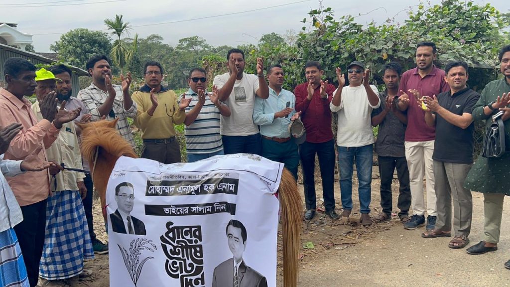 সোমবার বিকালে উপজেলার ধলঘাটে নেতাকর্মীদের সাথে নিয়ে তারা এই গণসংযোগ চালান৷ এসময় তারা মানুষের কাছে ধানের শীষের লিফলেট বিতরণসহ ঘরে ঘরে, দোকানে দোকানে এনামুল হকের জন্য ভোট চান।