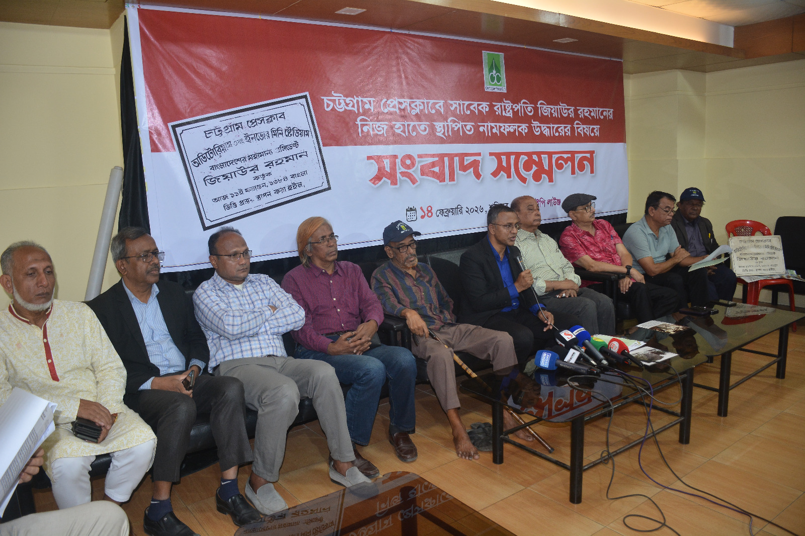 লিখিত বক্তব্যে উল্লেখ করা হয়, প্রেসক্লাবের বর্তমান কমিটি গত ১০ ডিসেম্বর’২০২৬ ইং ২০২৬-২০২৭ সেশনের জন্য প্রেসক্লাবের ব্যবস্থাপনা কমিটির দায়িত্বভার গ্রহণ করেন। বর্তমান কমিটি দায়িত্ব গ্রহণের পর জানতে পারে তৎকালীন প্রেসিডেন্ট জিয়াউর রহমান ১৯৭৮ সালের ২৪ ফেব্রুয়ারী চট্টগ্রাম প্রেসক্লাবের অডিটরিয়াম ও ইনডোর স্টেডিয়াম নির্মানকাজের ভিত্তিপ্রস্তর স্থাপন করেন। সে সময় দৈনিক আজাদীর সম্পাদক এম এ মালেকসহ সাংবাদিক ও বিশিষ্ট ব্যক্তিরা উপস্থিত ছিলেন। ওই অনুষ্ঠানের ছবি তোলেন তৎকালীন নামকরা সাংবাদিক ও পরবর্তীতে প্রেসক্লাবের সাধারণ সম্পাদক ওসমান গনি মনসুর। তখন থেকেই সাবেক প্রেসিডেন্ট জিয়াউর রহমানের উদ্বোধনের ভিত্তিপ্রস্তর ফলকটি ক্লাবের সামনের দেয়ালে খোদাই করে লাগানো ছিল। পরবর্তীতে সাবেক প্রধানমন্ত্রী শেখ হাসিনার চট্টগ্রাম প্রেসক্লাবে আগমনের সময় উক্ত ভিত্তিপ্রস্তরটি খুলে ফেলা হয় বলে জানা যায়। এরপর থেকে ভিত্তিপ্রস্তরটি কোথায় ছিল কেউ বলতে পারছিলেন না বিগত কমিটির সভাপতি, সাধারণ সম্পাদকসহ কমিটির নেতাদের কাছে এ সব বিষয়ে প্রশ্ন করা হলে তারা আমাদেরকে আওয়ামী সরকার বিরোধী আখ্যায়িত করে হুমকি ধামকি দেন।