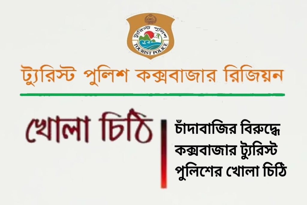 পর্যটন জোনের প্রায় দুই শতাধিক আবাসিক হোটেল, কটেজ ও রিসোর্টে একটি খোলা চিঠি পাঠিয়েছে ট্যুরিস্ট পুলিশ। চিঠিতে ব্যবসায়ীদের উদ্দেশে অনুরোধ জানানো হয়েছে—কোনো ব্যক্তি বা চক্র যদি তাদের প্রতিষ্ঠানে চাঁদা দাবি করে, তবে সঙ্গে সঙ্গে ট্যুরিস্ট পুলিশকে অবহিত করতে। তথ্যদাতার নাম-ঠিকানা সম্পূর্ণ গোপন রাখা হবে বলেও আশ্বস্ত করা হয়েছে।